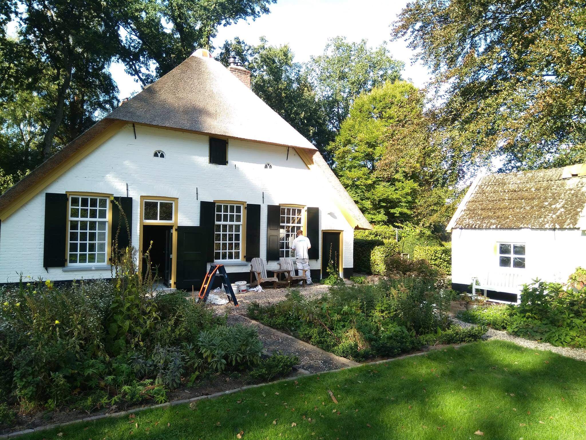 De gevel is behandeld met een dampopen muurverf en alle houten luiken, kozijnen en deuren zijn uiteraard in de hoogglans afgeschilderd.