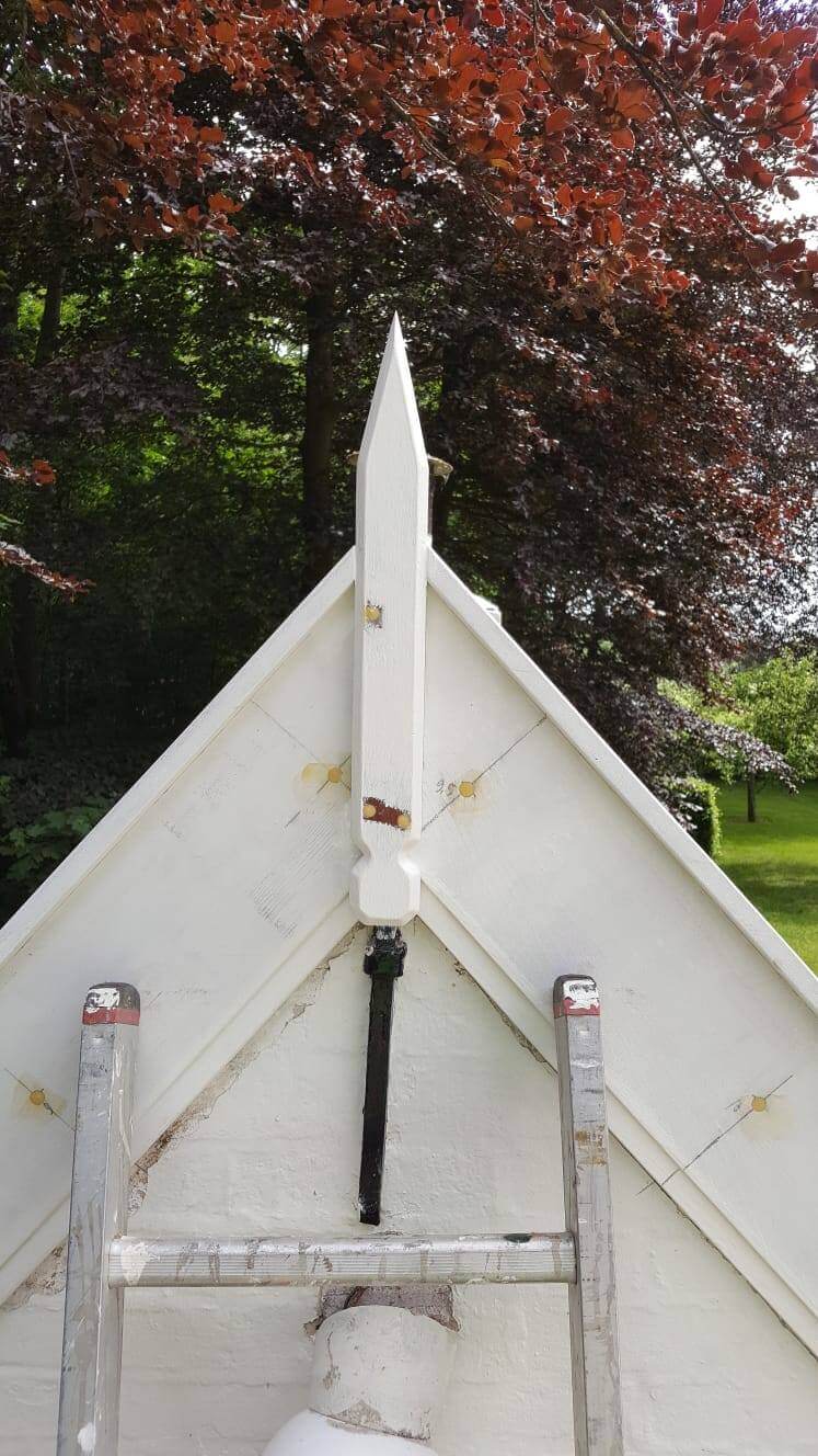 Eerst is alles opnieuw in de primer en grondverf gezet en zijn alle kleine ramen in de voorgevel opnieuw in de stopverf gezet. Prachtig om te doen en met veel geduld!