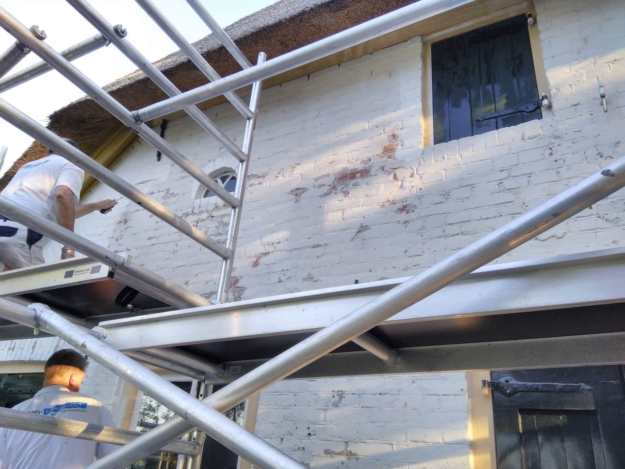 Bij deze prachtige Veluwse boerderij mochten wij het volledige onderhoud gaan uitvoeren. Wij hebben bij verschillende kozijnen houtrotsanering uitgevoerd en een deelvervanging van kozijnen gedaan. Daarbij is de complete gevel in de steigers gezet en ontdaan van loszittende delen op het metselwerk en zijn alle oude loszittende delen verwijderd.